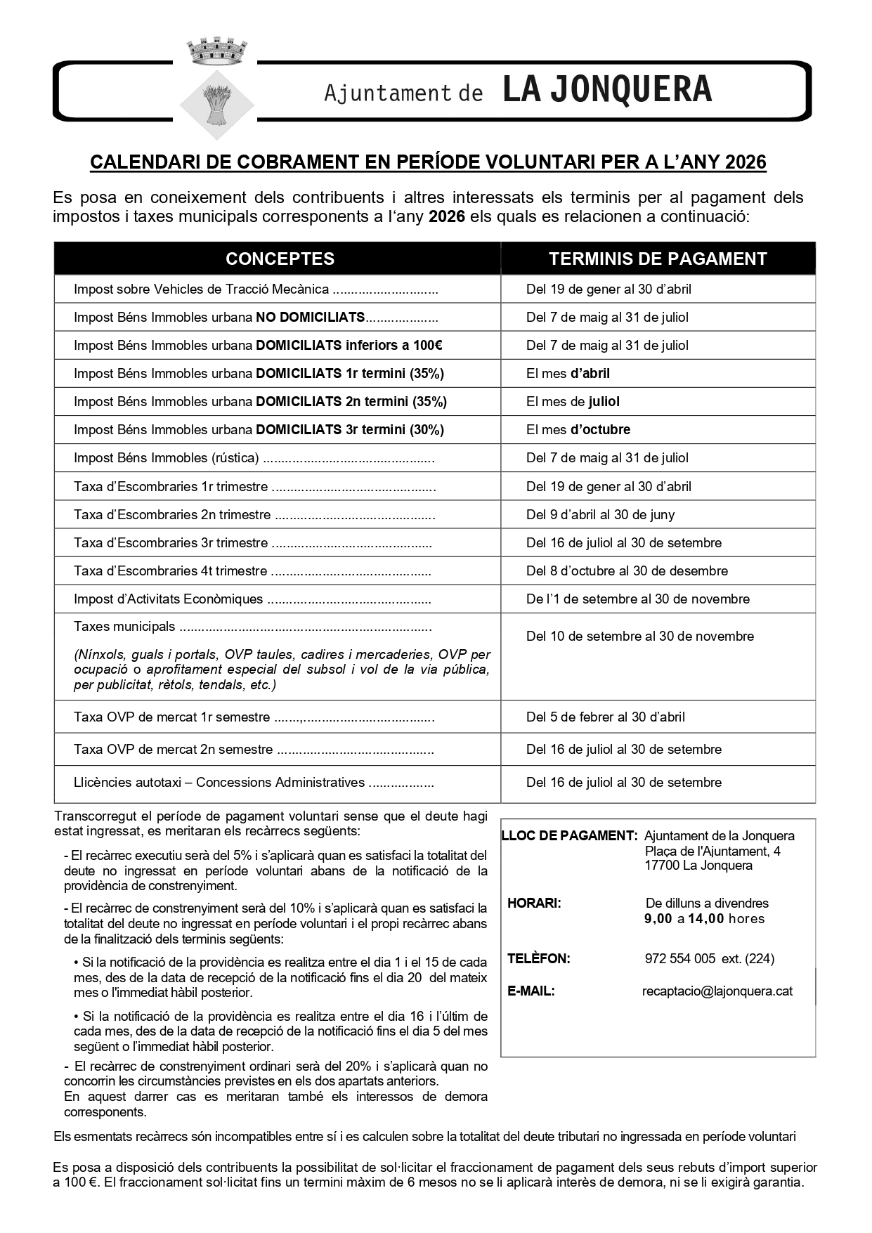 L’Ajuntament de la Jonquera aprova la modificació de tres ordenances fiscals per al 2026 per impulsar el comerç local i millorar la mobilitat